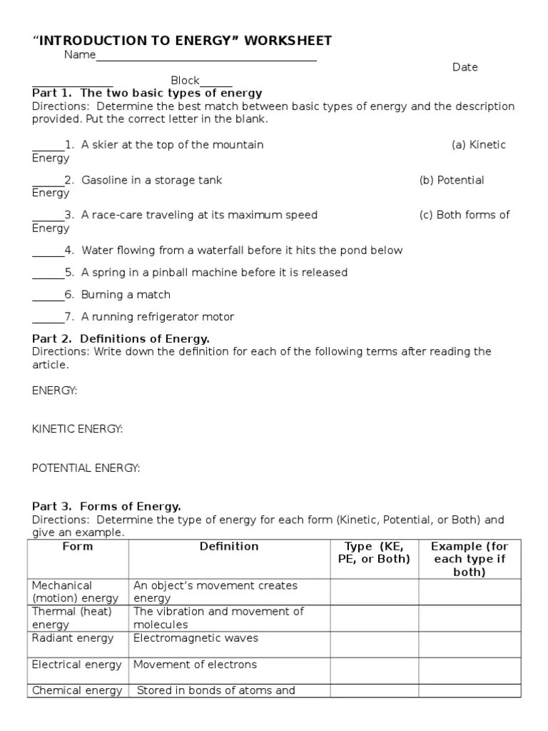 Forms Of Energy Worksheet : Introduction To Energy Worksheet -. But whatever form it is in, energy is essentially the capacity for. Electrical energy drives many small machines and keeps lights glowing. Official california energy commission compliance documents you can download and use to show compliance with the 2019 california building energy efficiency standards (title 24, part 6 or energy code). To open those forms using chrome you will need to use your local pdf reader installed on your computer (e.g adobe reader). Washington state energy code (wsec) for a formatted copy of the wsec, scroll down to the energy code section to locate pdf files that are free to download.